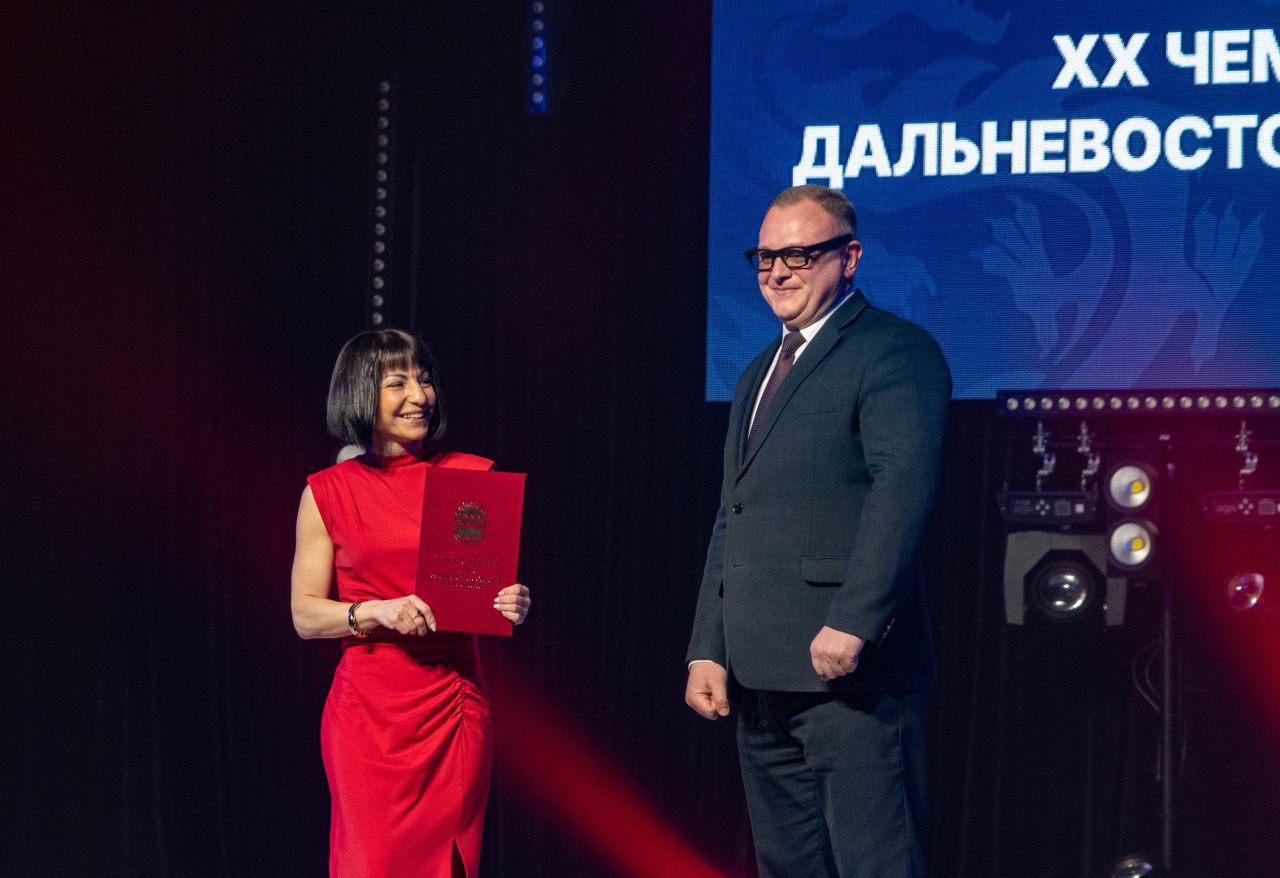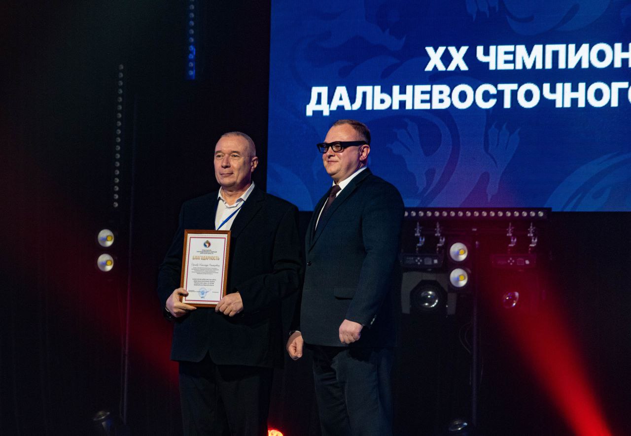 За многолетнюю добросовестную работу и эффективное выполнение трудовых обязанностей Евгений Анатольевич вручил Благодарность Законодательного Собрания Амурской области тренеру-преподавателю спортивной школа № 5 города Благовещенска, члену региональной спортивной общественной организации «Федерация ушу Амурской области» Александру Дронову.