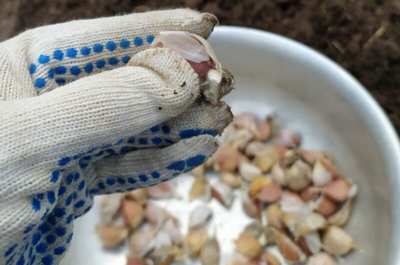 Зубчики следует высаживать на глубину 5-7 см в зависимости от их размера. После посадки рекомендуется прикрыть грядки перегноем или соломой для утепления, чтобы чеснок не вымерзал и смог успешно укорениться. Этот метод проверен временем: в прошлом году посадка чеснока в ноябре дала отличный результат — урожай был крупным и здоровым.