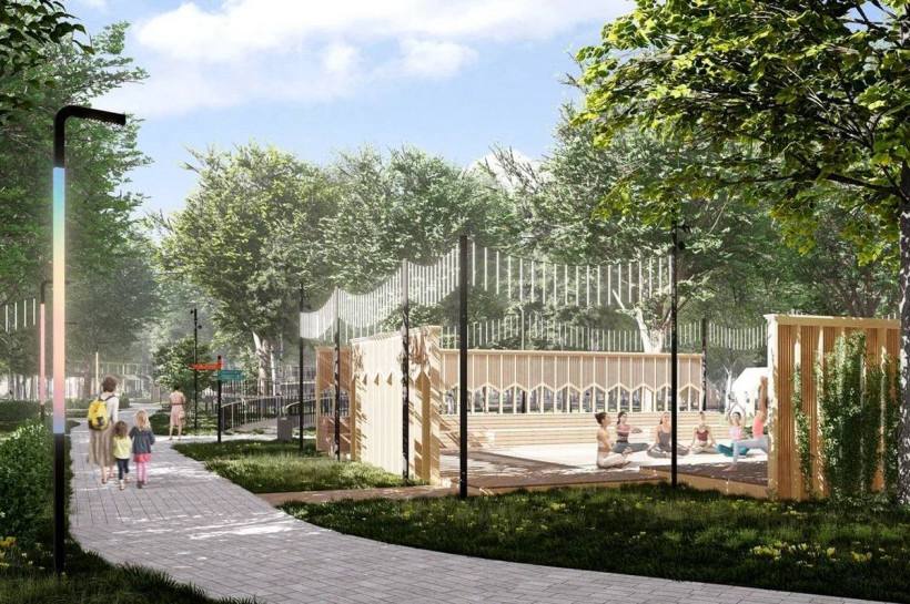 Зону отдыха дополнят детская зона, беседки для тихого отдыха и сцена-подиум для кинопоказов под открытым небом.