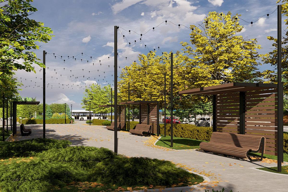 В разных уголках территории появятся места для отдыха: качели и скамейки с навесом.