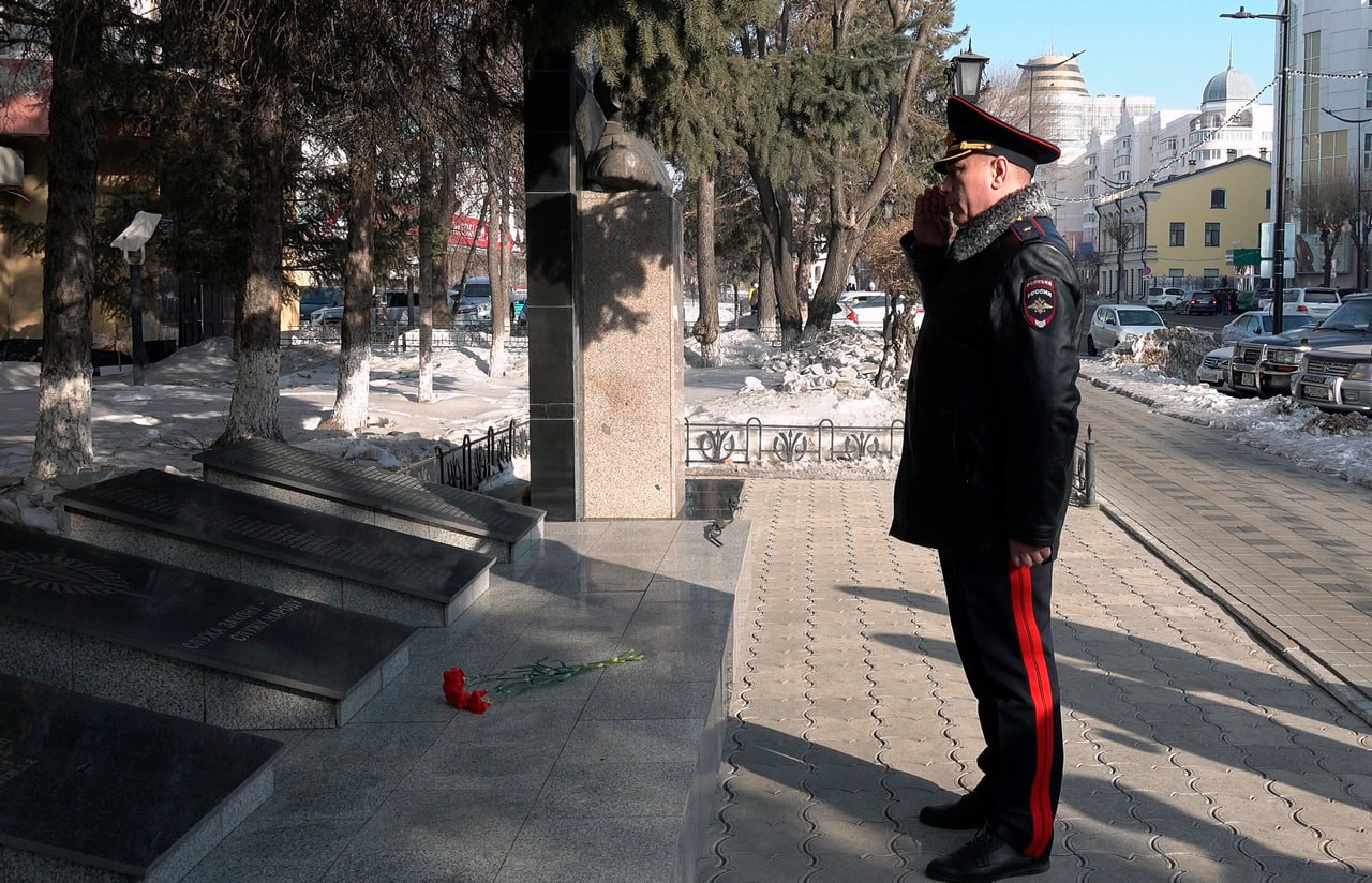 Мероприятие началось с церемонии возложения цветов к Мемориалу у здания Управления. Начальник регионального УМВД генерал-майор полиции Олег Шилов и его заместители почтили память сотрудников, погибших при исполнении служебного долга.