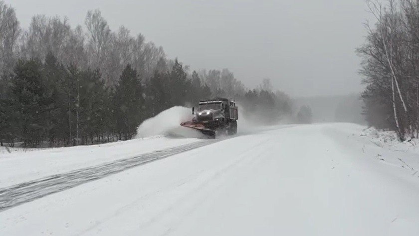 В Приамурье дорожные службы работают в усиленном режиме, устраняя последствия циклона. Уборка снега идёт и днём, и ночью.