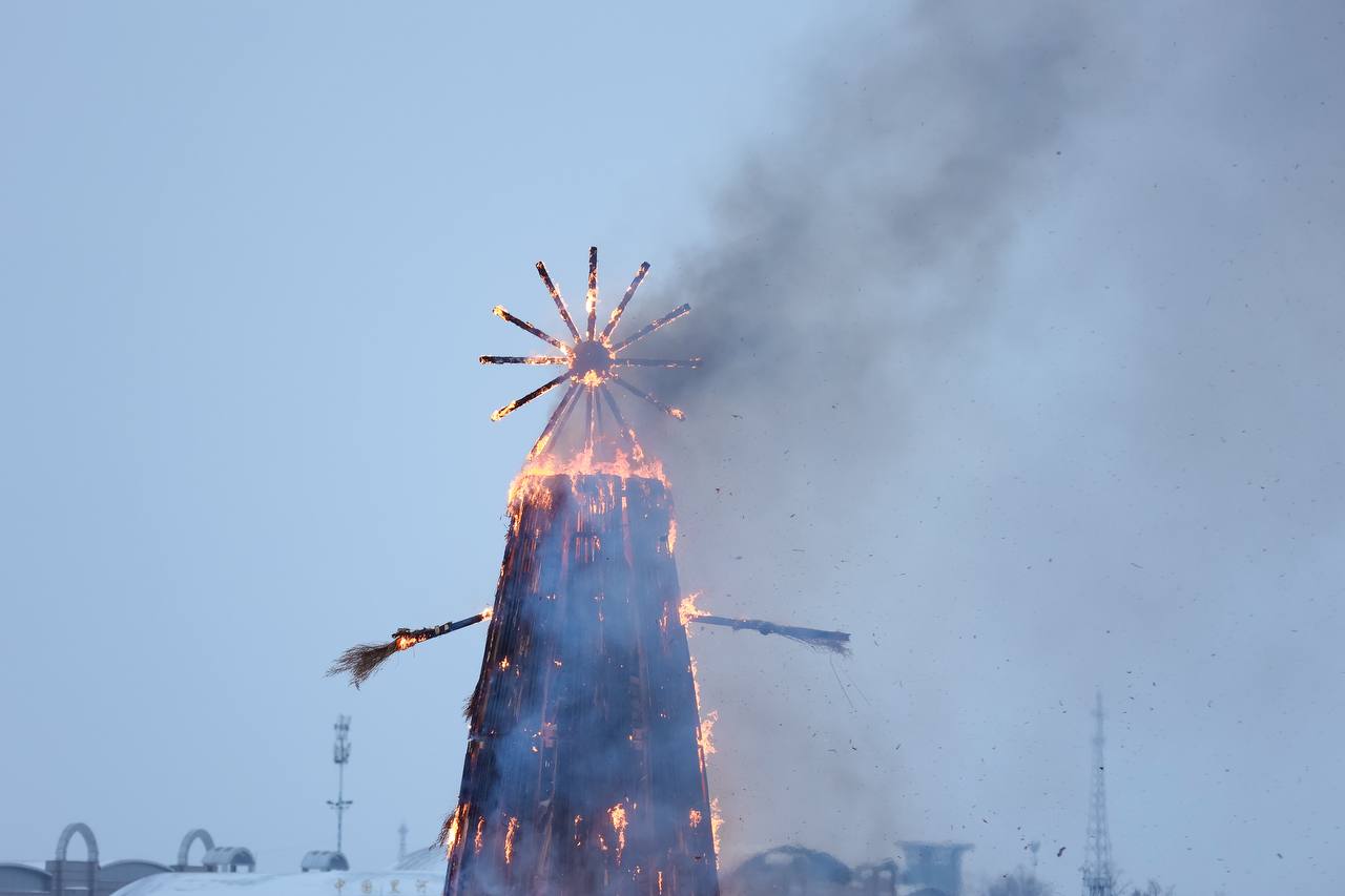 Самым ярким моментом праздника стало сожжение 15-метрового чучела на льду пограничной реки