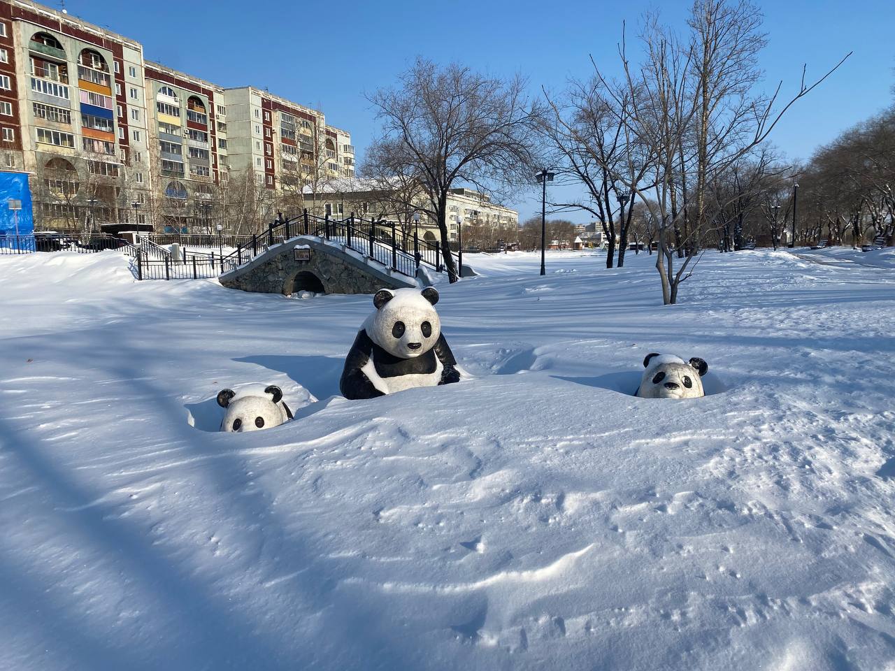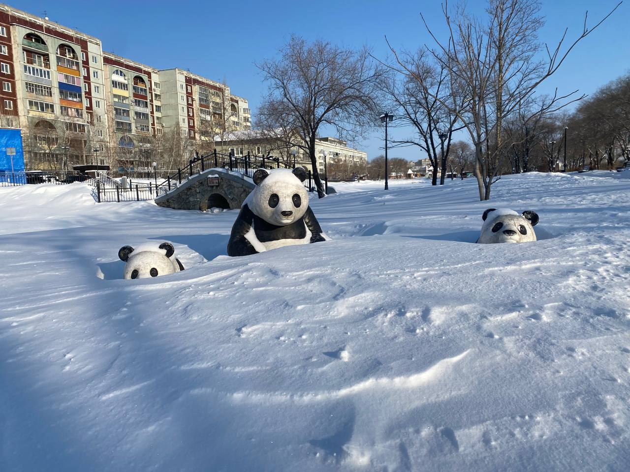 Обитатели парка Дружбы под снегом