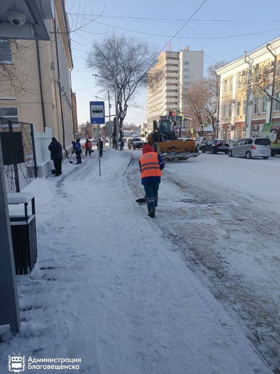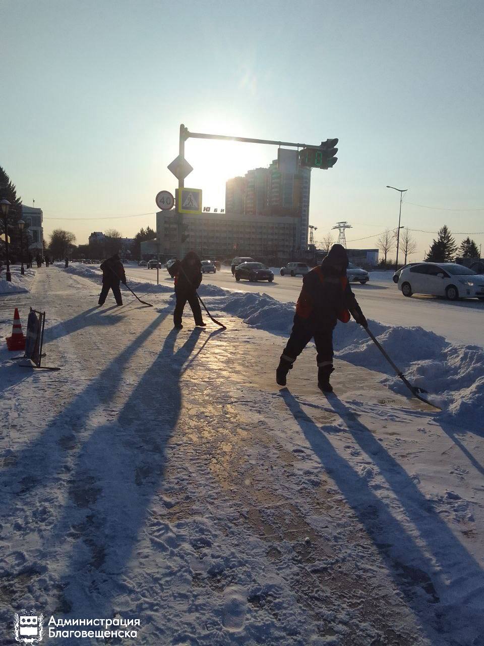 Так, работники ГСТК очищали улицы Чайковского, Мухина, Комсомольской и Красноармейской, а крупные магистральные улицы подсыпали противогололёдным материалом. Также снегоуборочная техника прошла по тротуарам на улице 50 лет Октября, Институтской и Василенко. На улице Амурской ресурсоснабжающие организации вручную очищают ото льда канализационные люки.