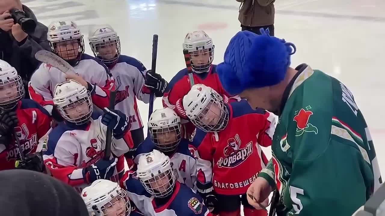 Единственный пятикратный обладатель Кубка Гагарина Данис Зарипов проводит мастер-класс для юных спортсменов в Благовещенске