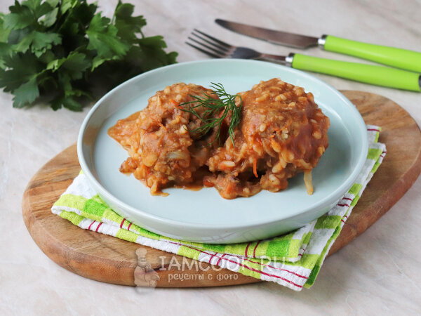 Ленивые вегетарианские голубцы с чечевицей и рисом