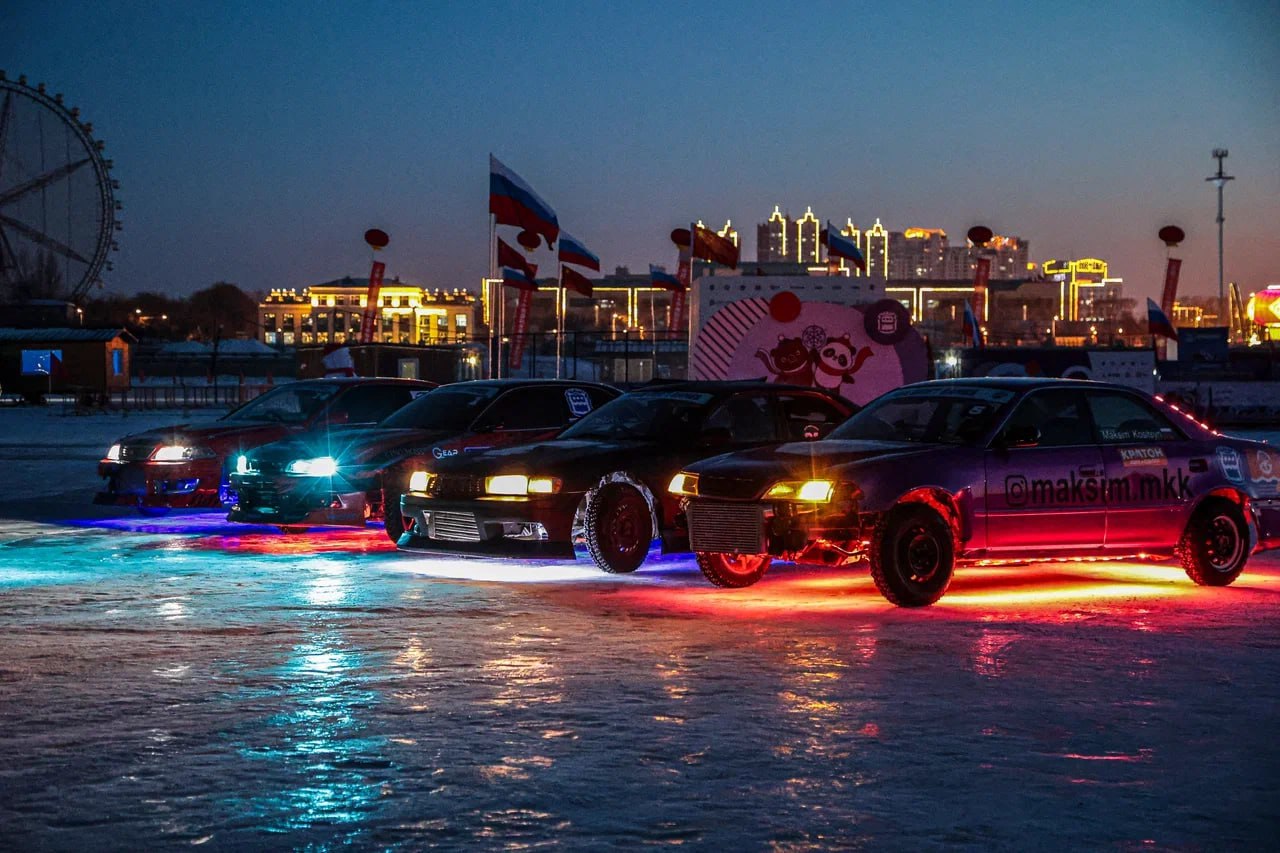 Фоторепортаж с вчерашнего вечернего заезда автомобилей от пресс-службы фестиваля #ЗимФестАмур