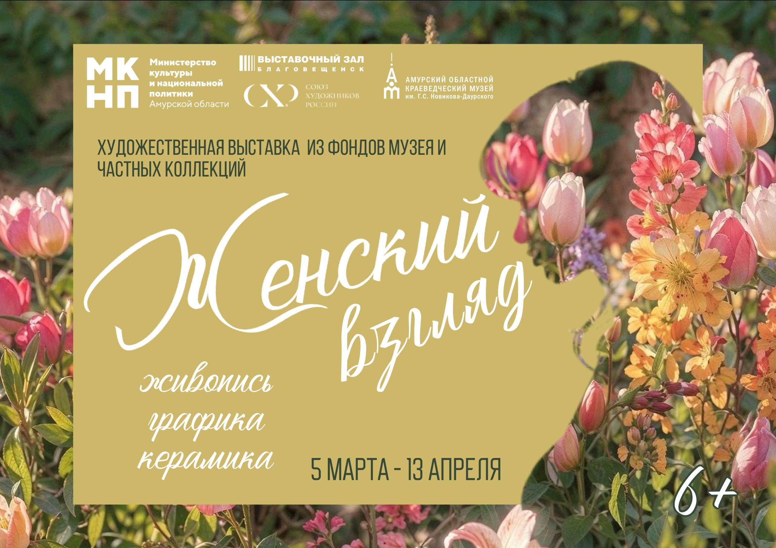 5 марта в 17:00 в Выставочном зале состоится открытие художественной выставки «Женский взгляд» (6+). В экспозиции представят 96 работ из фондов Амурского областного краеведческого музея и частных коллекций. Это пейзажи, портреты, натюрморты, созданные женщинами-художницами, каждая из которых предлагает свой неповторимый взгляд на окружающий мир.