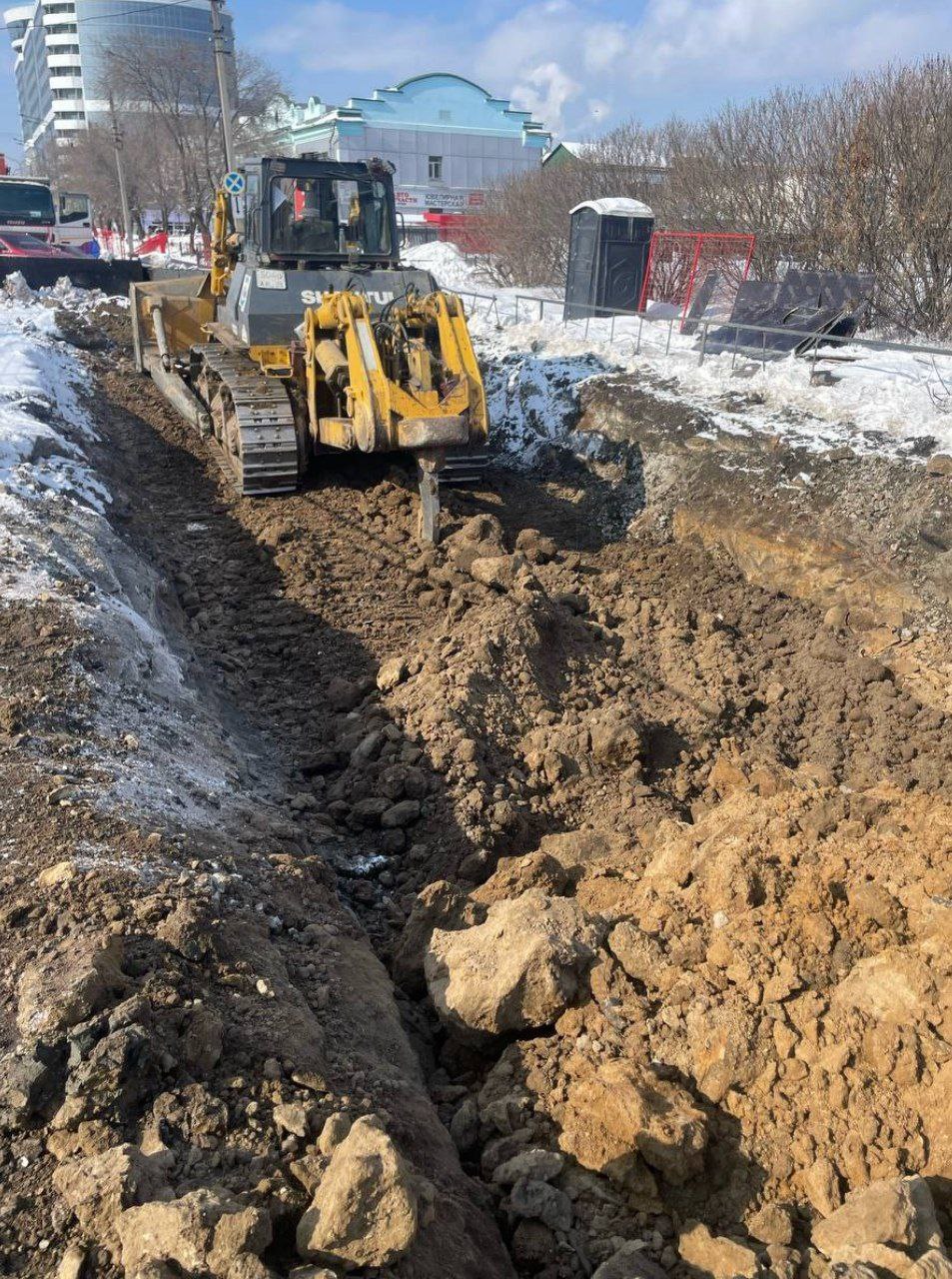 В центре Благовещенска готовят котлован для замены водопровода