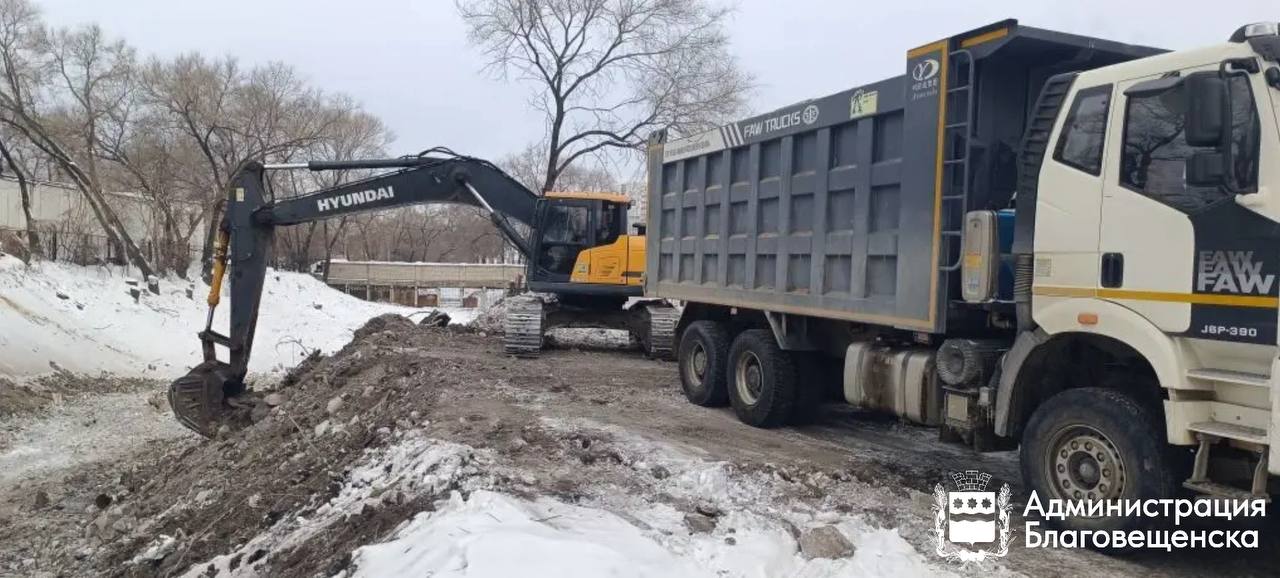 Коммунальщики продолжают чистить русло Бурхановки: в этот раз на участке от улицы Лазо до реки Зеи