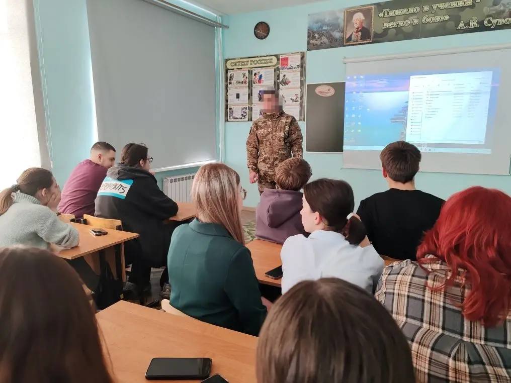 Старшеклассники с большим интересом слушали бойца и задавали вопросы о службе.