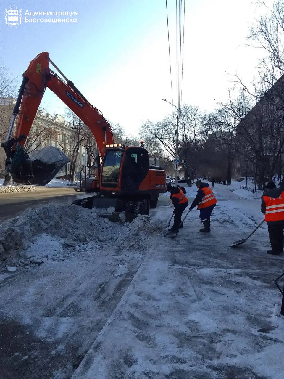 Уважаемые благовещенцы! На улицах города ежедневно продолжаются активные работы по очистке крыш от снега и наледи. Однако и горожанам не стоит терять бдительность. Просим вас соблюдать осторожность, проходя рядом со зданиями.