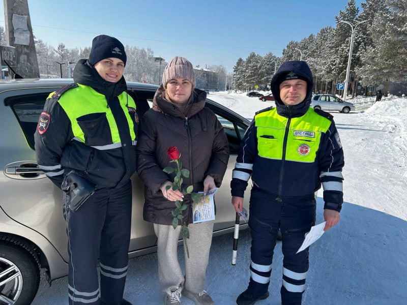 Госавтоинспекторы Приамурья продолжают дарить праздничное весеннее настроение амурским автолюбительницам.