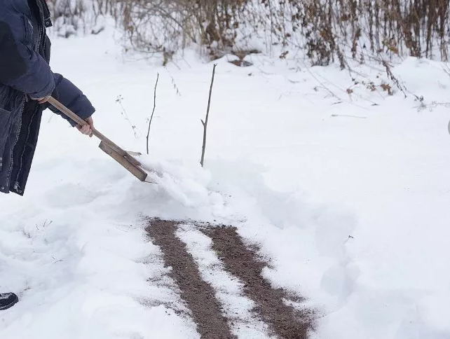 3. Посев в земляные бороздки: Очищая грядку от снега, сделайте углубления в почве, заполните их семенами и присыпьте землей. После этого верните слой снега на место и накройте укрывным материалом.
