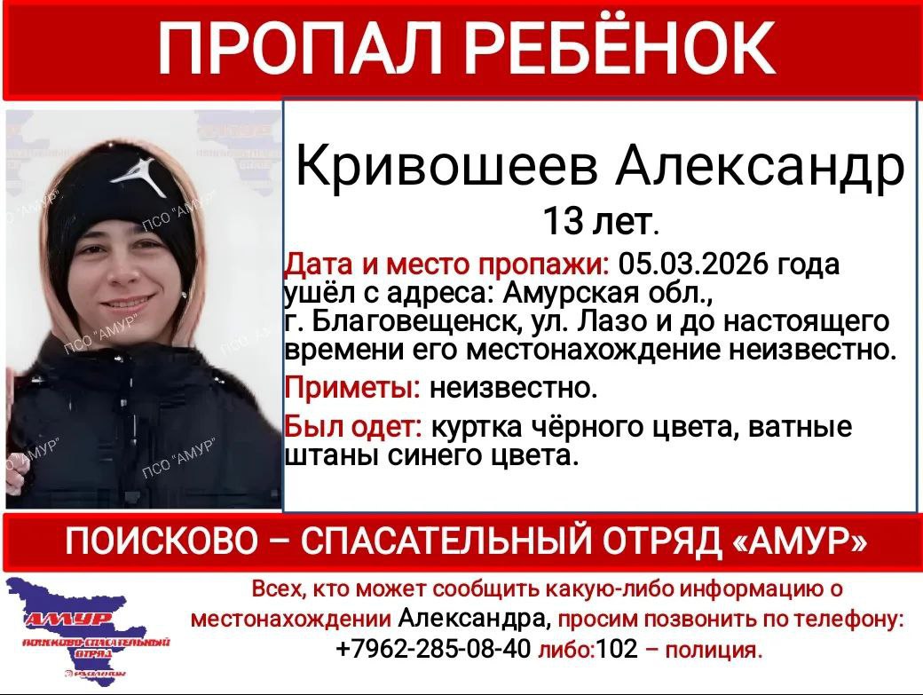 В Благовещенске разыскивают подростка, местонахождение которого остается неизвестным с 5 марта. Александр ушел из дома на улице Лазо и не вернулся: https://asn24.ru/news/crime/144767/