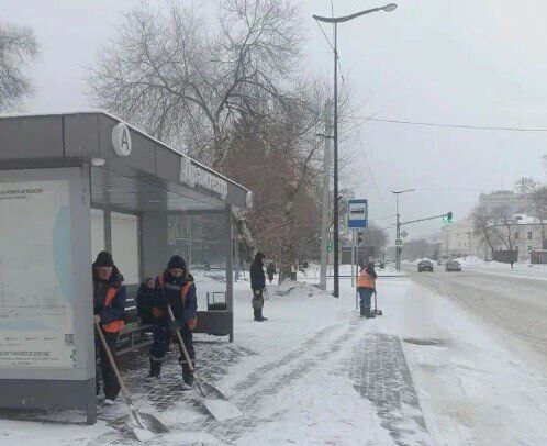 Одновременно с этим работники ГСТК убирают тротуары на улицах Студенческой, Кантемирова, Институтской, Василенко и Ленина. Также они очищают подходы к пешеходным переходам и автобусным остановкам на улице Ленина и Игнатьевском шоссе.