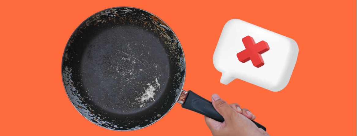 Если покрытие сильно повреждено и начинает прилипать пища, есть возможность снять антипригарный слой с помощью абразивных средств. Однако это приведёт к потере антипригарных свойств, и посуда превратится в обычную литую, что потребует добавления масла при готовке.