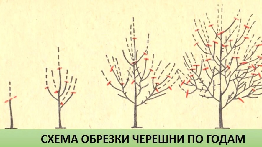У вишни и черешни плодоношение происходит на букетных веточках и однолетнем приросте, что отличается от семечковых культур. Краткие особенности: