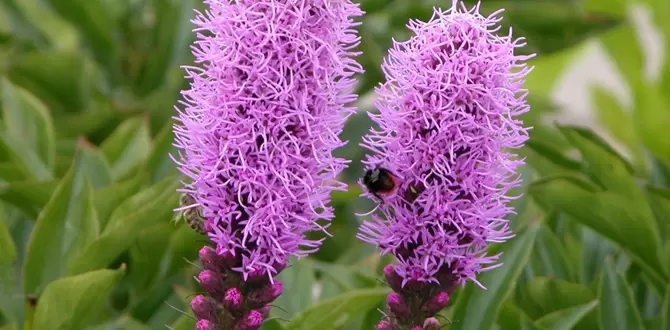 Лиатрис, родом из Северной Америки, привык к выживанию в непростых условиях прерий. Это многолетнее растение отличается необычным методом цветения: оно распускается сверху вниз, чем выделяется среди других растений, цветущих иначе. Его плотные колосья могут быть лиловыми, розовыми и даже белыми — и, что приятно, пчелы и другие опылители их просто обожают.