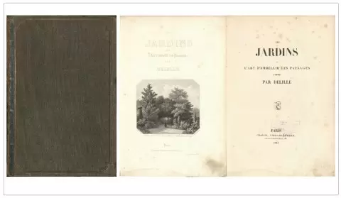"Сады, или искусство украшать пейзажи", опубликованная в 1782 году, стала бестселлером своего времени. Делиль не был профессионалом в области ландшафтной архитектуры; он был поэтом, который разработал правила для создания гармоничных и природных садов, возражая против строгих формальных стилевых решений.