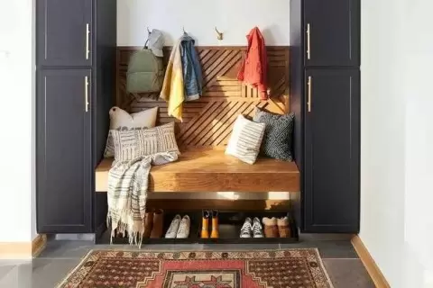 Отличным решением станет переосмысленный подход к зоне входа. Школьные рюкзаки, спортивные сумки и прочие принадлежности врываются в дом, и необходимо отвести им достойное место. Учтите, что у родителей тоже есть свои сумки и ключи, поэтому важно создать организованное пространство, чтобы всё было под рукой и на виду.