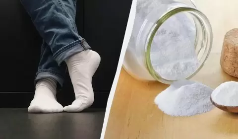 Если уксус не помог, не отчаивайтесь! Сода также отлично справляется с трудноудаляемыми загрязнениями и неприятными запахами. Чтобы использовать это средство, разведите стакан соды в большом тазу с холодной водой и опустите туда носки на ночь. После замачивания поместите их в стиральную машину, выбрав максимальную допустимую температуру.