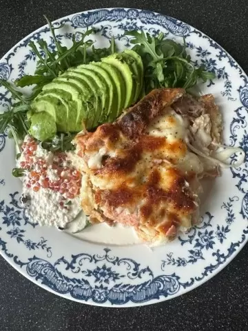 Запеканку можно подавать с рукколой и авокадо. Для соуса используйте свои любимые ингредиенты. Хотя сам рецепт соуса не был зафиксирован, эксперименты на кухне могут привести к новым, удивительным находкам. Дочка оценила блюдо даже без соуса, что говорит о его насыщенном вкусe.