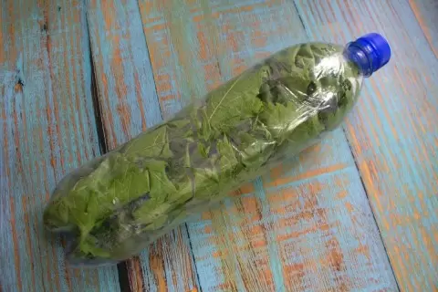 Для начала важно правильно выбрать листья: они должны быть свежими и нежными, без повреждений. Промывать нельзя, достаточно удалить пыль с помощью мягкой ткани. Листья сворачиваются в трубочки и аккуратно укладываются в пластиковую бутылку, желательно так, чтобы они не разворачивались. Если это все же происходит, не переживайте, листья можно вставить обратно.