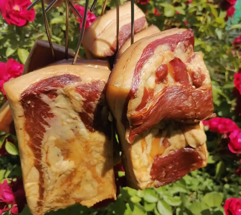 Очистка и сушка: Промойте сало под струей воды, чтобы удалить излишки соли, и обсушите бумажными полотенцами. Подвешенное на крючках сало должно просохнуть около суток. Это существенно повлияет на равномерность копчения.