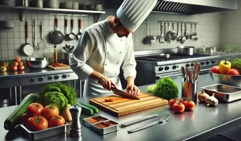 - Уборка в процессе готовки. Главное правило ресторанного мира – не откладывать на потом. Мелкие загрязнения лучше убирать сразу же. После нарезки овощей остатки отправляются в мусор, а столик моментально протирается влажной тряпкой. Это поможет избежать накопления грязи.