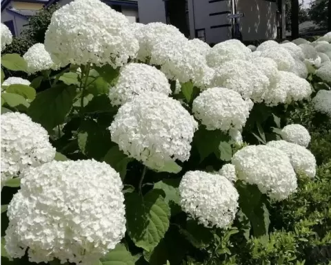 - Гортензия древовидная (Hydrangea arborescens): Этот сорт, родом из Северной Америки, способна переносить морозы до -40 °C. Она цветет на побегах текущего года и, даже если ее обрезать, весной быстро восстанавливается.