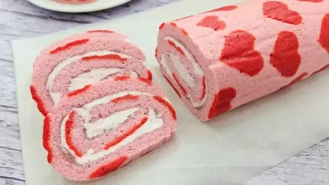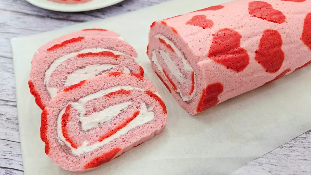 Готовясь к Дню всех влюблённых, стоит добавить в меню что-то особенное. Этот вкусный и яркий бисквитный рулет с сердечками — отличный выбор для сладкого окончания романтического ужина.