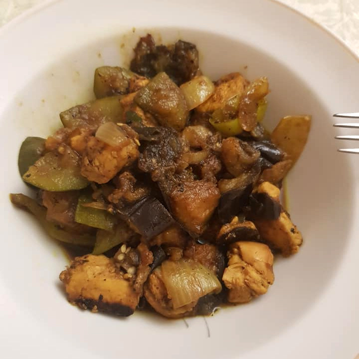 Первым шагом является тщательная подготовка куриного филе. Его следует промыть и нарезать на небольшие кубики. Далее баклажаны и кабачки также нарезаются кубиками. Баклажаны можно посолить и дать постоять 15-20 минут, чтобы избавиться от горечи, после чего нужно промыть и отжать.