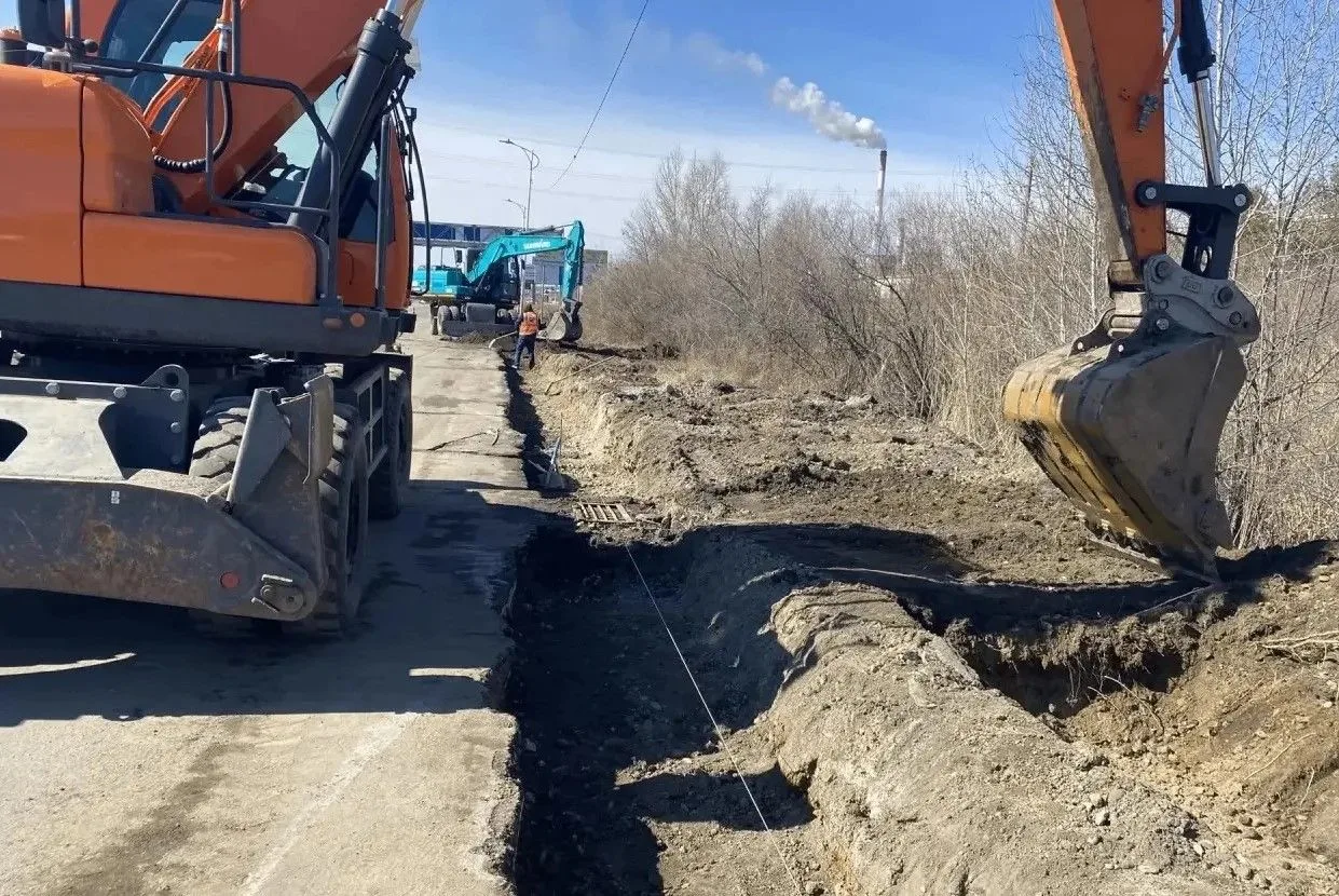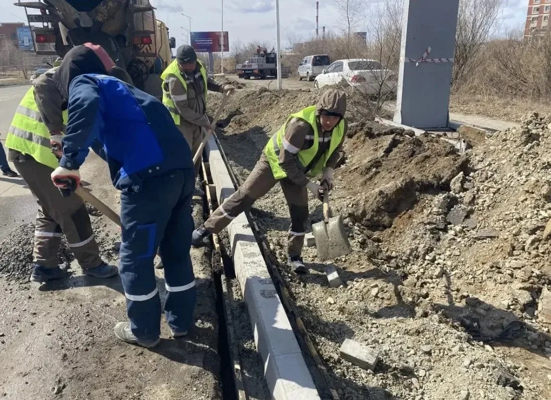 Ремонт стартовал в начале апреля, дорожники частично демонтировали бордюрные камни. Устанавливают новые бордюрные камни и монтируют кабельную канализацию.