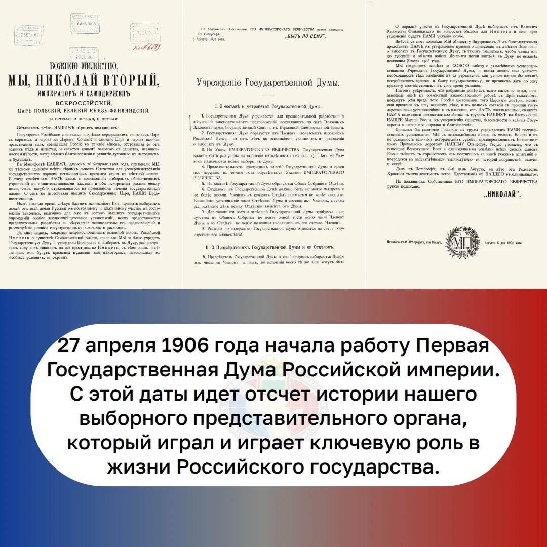 120 лет назад, 27 апреля 1906 года, состоялось первое заседание I Государственной Думы Российской империи. Именно с этого события берёт начало история российского парламентаризма.