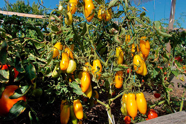 Что выделяет 'Банановые ноги' среди других сортов? Среднерослые кусты достигают высоты до 1 метра в открытом грунте и до 1,5 метра в теплицах. Плоды представляют собой небольшие «сливки» длиной до 10 см и весом 80-100 г, с характерной насыщенной жёлто-оранжевой окраской, что привлекает внимание гурманов и домашних поваров.