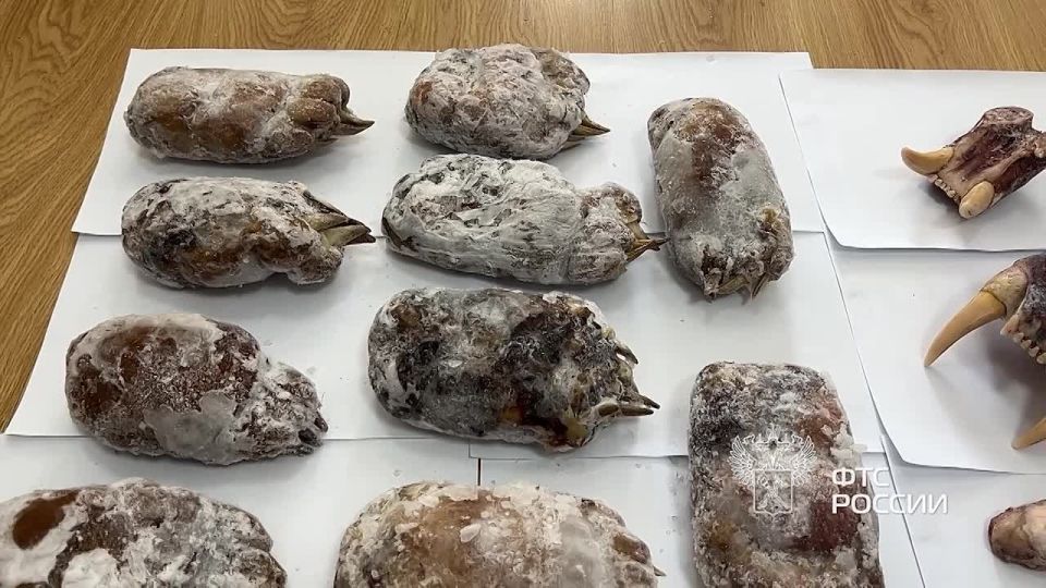 Как сообщили в ФТС РФ, в кабине большегруза под управлением иностранного гражданина была найдена верхняя и нижняя челюсти амурского тигра с клыками, резцами, две коленные чашечки и 10 лап медведей. Товары перемещались в свежезамороженном виде.Со...