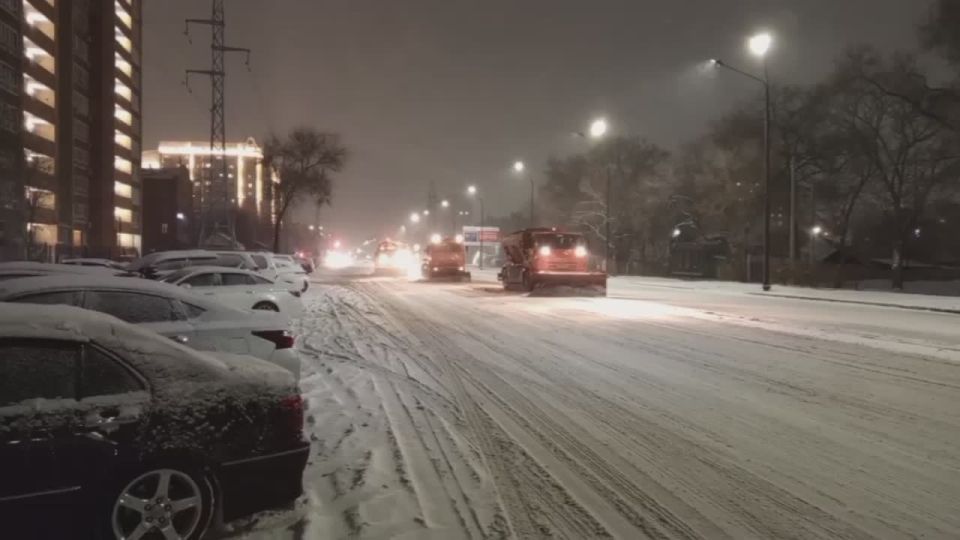 В Благовещенске продолжается очистка магистралей. На улицах - спецтехника и рабочие ГСТК. В связи с осадками, в первую очередь коммунальщики обрабатывают солевым раствором подъемы/спуски, кольцевые развязки, чтобы предотвратить гололедицу на...