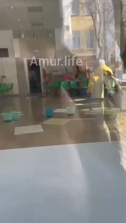 Судя по кадрам, которые сняли школьники, прямо с потолка столовой учебного заведения лилась вода.Также на кадры попало, как сверху падают элементы подвесного потолка, а на полу расставлены ведра, чтобы ловить льющуюся сверху воду.«Произошел сбой...
